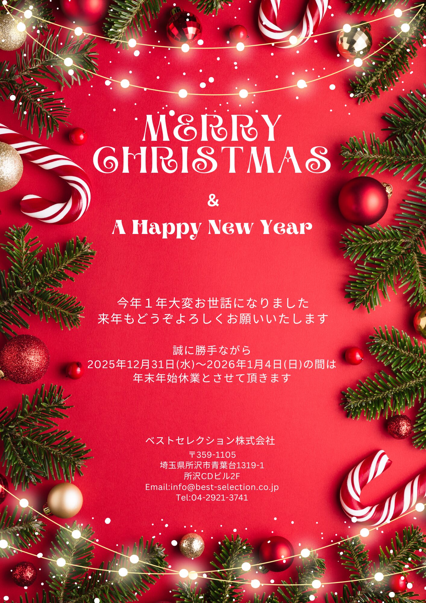 当社は 12月31日~1月4日 の期間、年末年始休業となります。
