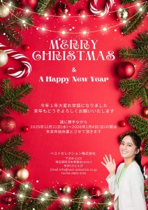 当社は 12月31日~1月4日 の期間、年末年始休業とさせていただきます。